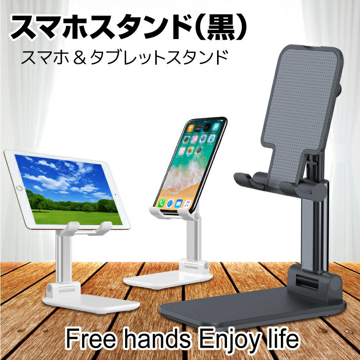 スマホスタンド タブレットスタンド 折りたたみ スタンド コンパクト ポータブル 卓上 携帯 安定 角度調整 滑り止め アイフォン iPad iPhone 小型 モニター 置き台 高さ 調節 目線 姿勢 肩こり 対策 縦置き 横置き 快適 在宅 テレワーク グッズ ブラック RS-SS-8673