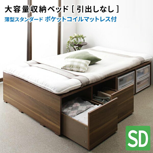 収納ベッド マットレス付き セミダブル [ハイタイプ 薄型スタンダードポケットコイルマットレス付き 引き出しなし セミダブル 布団が敷ける マットレス付き Semper センペール] ヘッドレスベッド 収納付きベッド ベッド下に収納ケース