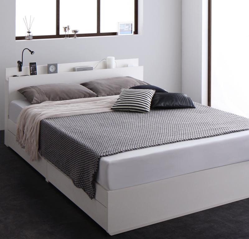 組立設置付 コンセント、収納ヘッドボード付きチェストベッド Blenda ブレンダ ベッドフレームのみ セミダブル ホワイト